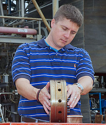 A 3D printed rocket injector. It was made with just two pieces whereas a similar injector made with traditional welding had 115 pieces. Image: Wikimedia Commons