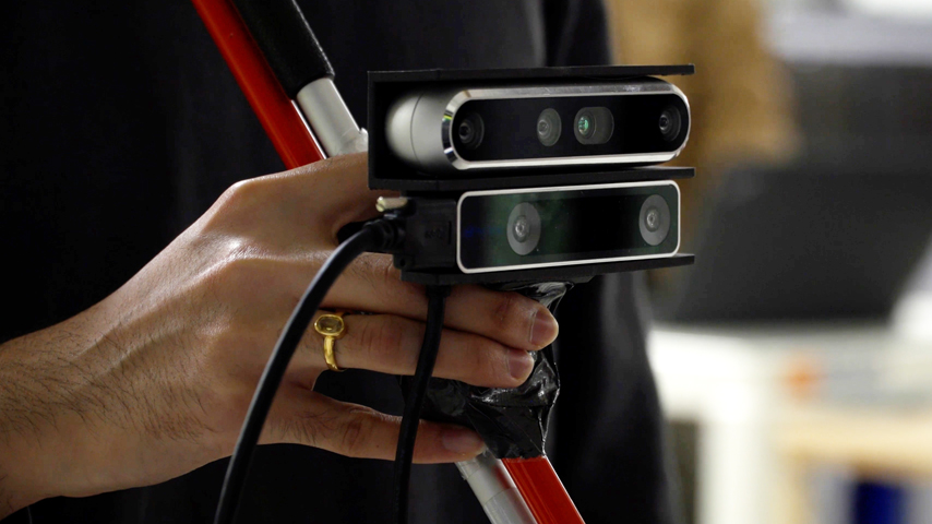 Together with team members of the university’s Collaborative Artificial Intelligence and Robotics Lab, they fitted a cane with a camera and computer vision technology. For navigation, it guides users with vibrations in the handle and spoken directions.