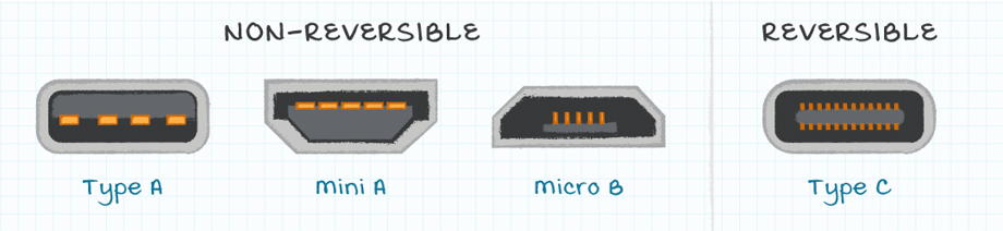While USB connectors were initially developed to deliver both power and digital signals, the wide acceptance of the USB mechanical connector and electrical power levels has led to many power-only applications. The USB Type-A connector is available in multiple configurations (standard, mini, micro, etc.) and, by convention, is used to deliver 5 V at a maximum load current of 2 A (10 W). A minor but sometimes frustrating limitation of the USB Type-A connectors is the plug and receptacle must be in the correct orientation (right-side up versus upside-down) before they can be mated.