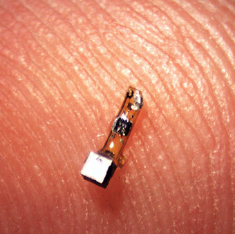 These tiny wireless, battery-less implantable sensors could improve brain control of prosthetics. Image: Ryan Neely / UC Berkeley