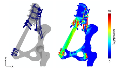Researchers already made key findings by reviewing model data. Surgeons typically choose the femur, tibia, or fibula for bone grafts. The models showed the femur and tibia performed better when compared to the thinner fibula because they have larger cross-sectional areas. They also found commonalities in the hardware material used to anchor the graft to the pelvis and spine during reconstruction, which most often is titanium, stainless steel, magnesium, or polymer based. In high load scenarios, stiffer metals such as titanium and stainless steel are more effective when looking at preventing screw breakage, while polymer reduces stress shielding.