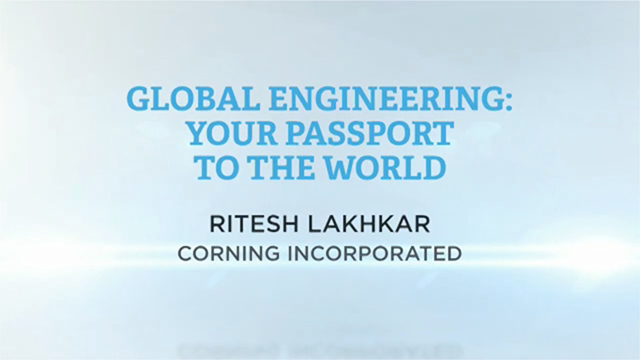Ritesh Lakhkar is a research and development engineer at Corning Incorporated with a diverse interdisciplinary background based in manufacturing processes. Having the opportunity to travel to four continents, he’s had a success career representing the engineering profession learning to adapt to different cultures and technologies from around the world.