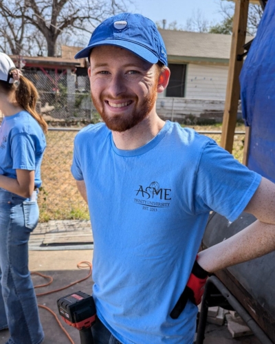 Giving back to the community is another key part of ASME section work. As the president of Trinity’s student section, Durr coordinates service projects with the Texas Ramp Project in San Antonio. The group is a non-profit, working across the state, where volunteers get together on Saturday mornings and go out and build wheelchair ramps for people who can’t afford to have one professionally built.